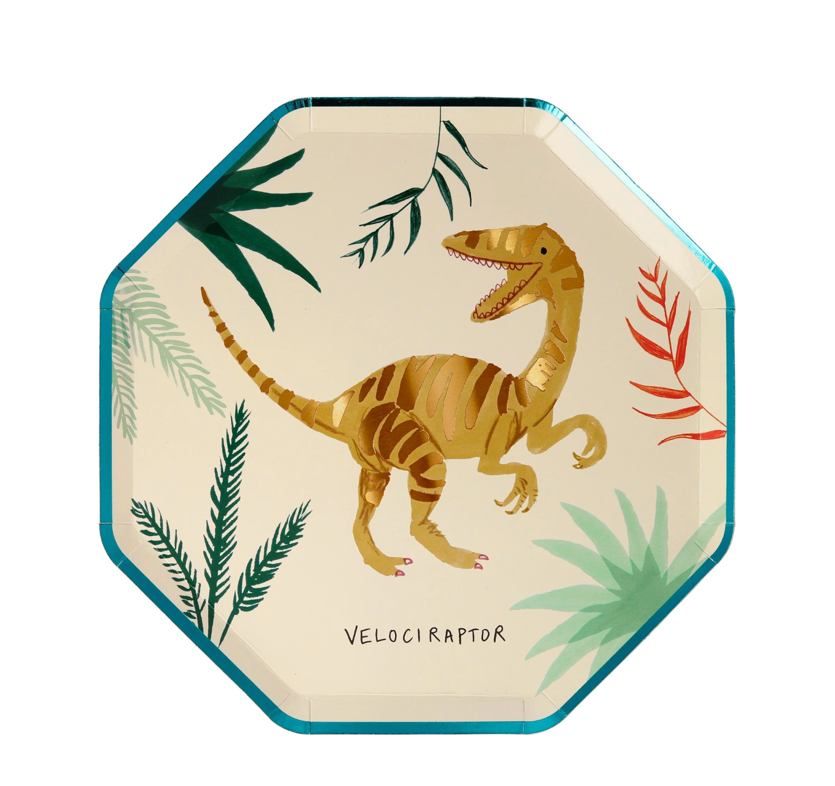 Make your dinosaur party look even more terrific with these brilliant Dinosaur Kingdom plates. Featuring beautiful illustrations of famous dinosaurs, with copper and green foil detail.
