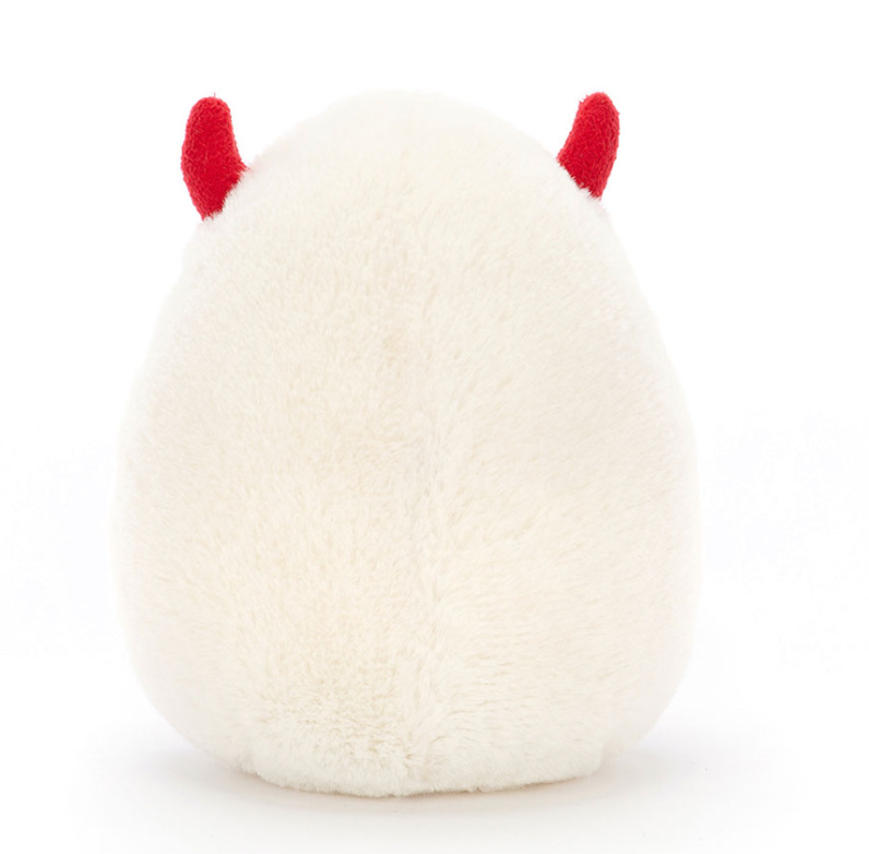 Amuseables Devilled Egg has a bright yellow face and a talent for mischief. Terribly soft for a hard-boiled egg, this scamp likes to sit on your shoulder and fill your head with impish ideas. Those suedey red horns and biscuit-brown boots are just too cute to resist!