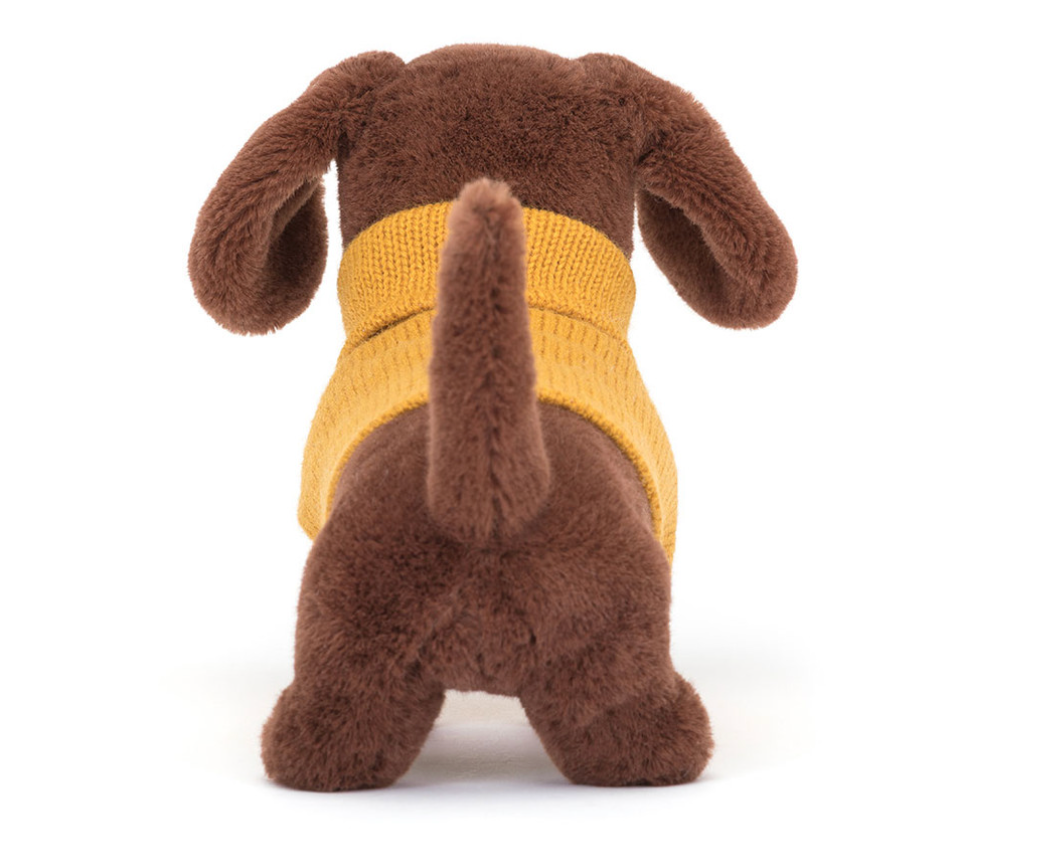 Sweater Sausage Dog Pink is all dressed up for a very cosy walk! This toffee pup wears a raspberry rollneck that goes very well with those floppy round ears. Perky and podgy with a neat nose and wee tail, this dog's looking dapper! No rolling in the mud, please!