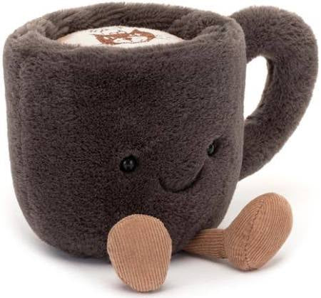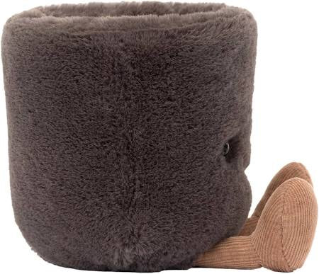 Amuseables Coffee Cup is a classic blend of rich textures and delicious colors, with notes of quirky charm! This charcoal cup perks up any desk, filled with a suedette ombre latte. With corduroy boots, a cheery smile and a Jellycat stencil embroidered on top, this cup is full of beans!