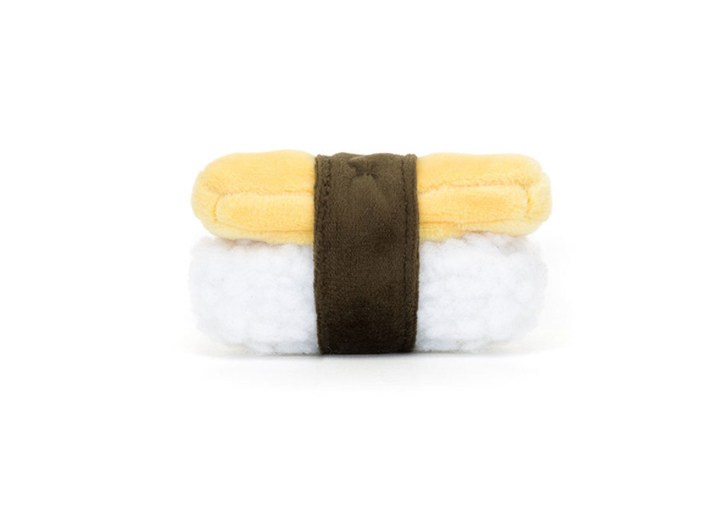 Sassy Sushi Egg is a little taste of kawaii. With a cloud of fleecy white rice, soft scrambled egg in primrose yellow and a deep olive band of nori, topped off with a stitchy smile, this sushi is truly special.