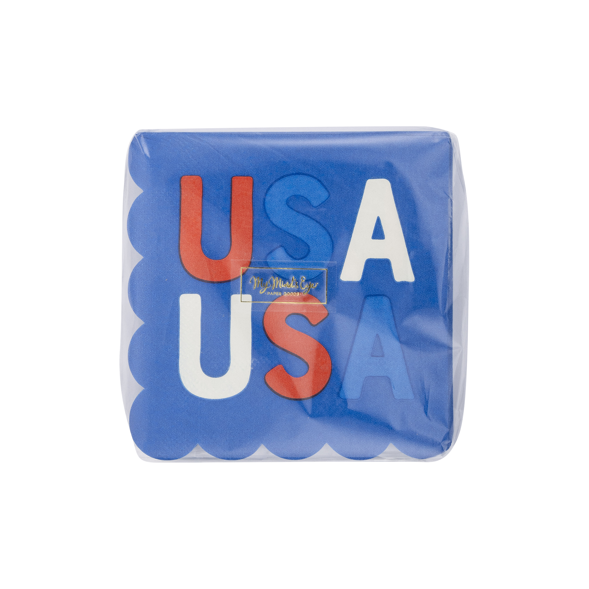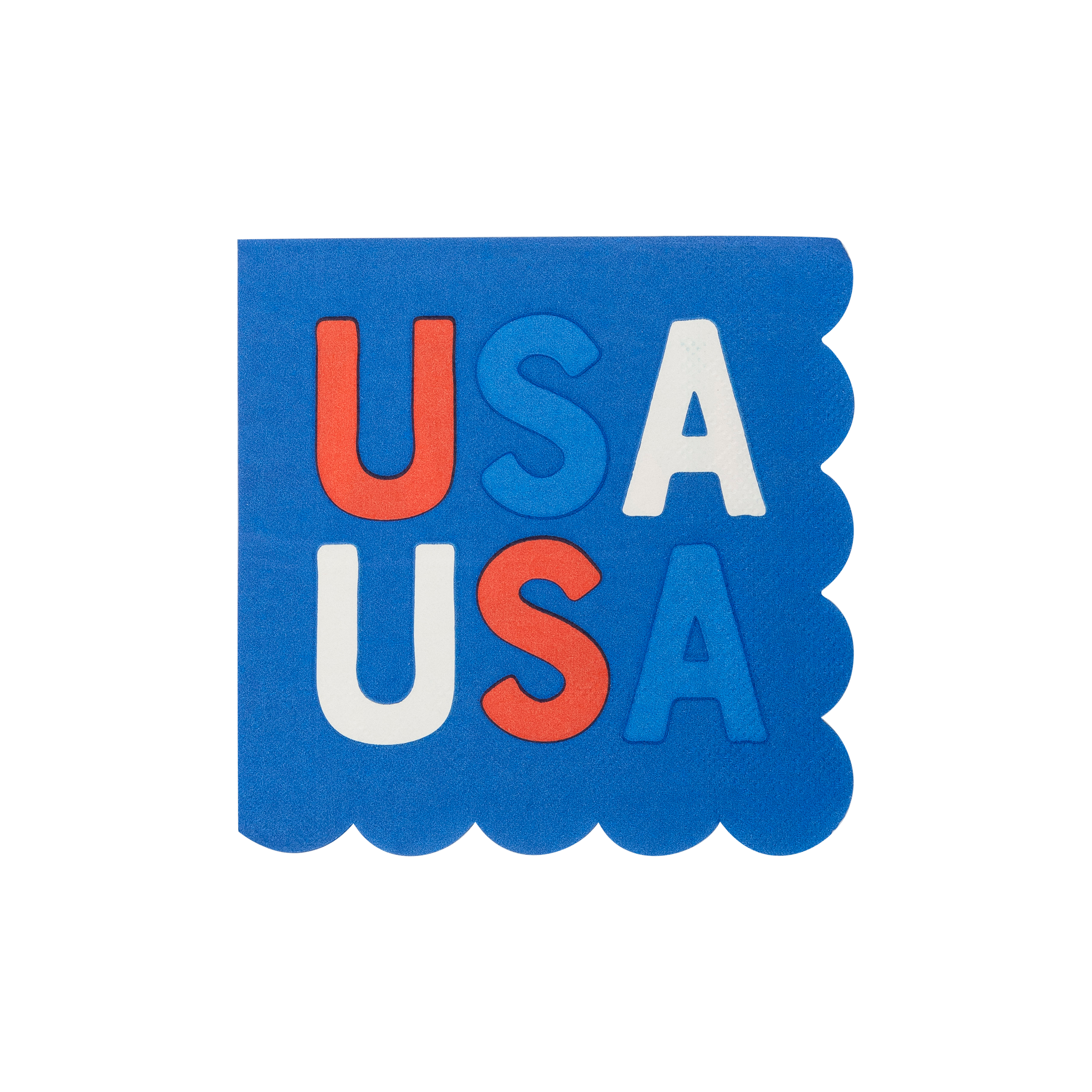 Add a touch of patriotism to your party with the USA Scallop Paper Cocktail Napkin! This quirky and fun napkin is perfect for any occasion. It's not just a napkin, it's a statement. Show your American pride with every sip!